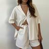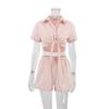 Fashion Summer Fashion Stripes Bandage Shirt Shorts Suit Striped Shirt and Shorts Set
