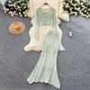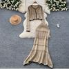 French Style Gentle Fancy Cut Out Knitting Cardigan Outwear + Silm Sheath Fishtail Skirt Two-piece Set