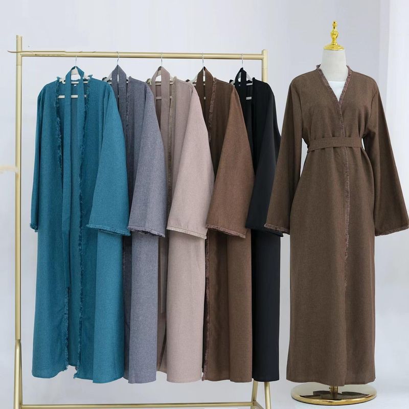 New Arrival Middle East Fimbrilla Cardigan Robe Dress Open Collar Lace up Robe Dress