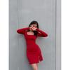 New Arrival French Hepburn Style Fancy Square Collar Split Dress Square Neck Split Dress