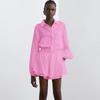 Fashion Shirt Ruffles Shorts Two-piece Set Casual Fashion Set Shirt Ruffle Shorts Set