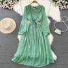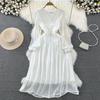 Spring and Autumn French Tea Break First Date Bubble Chiffon Dress