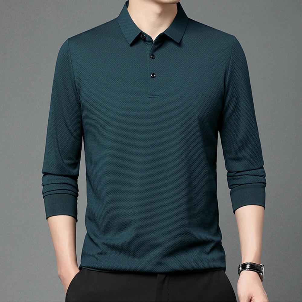New Autumn Polo T-shirt Mens Solid Color Waffle Long Sleeve Golf Polo Shirts Quality Ropa Hombre Social Business Polos Men