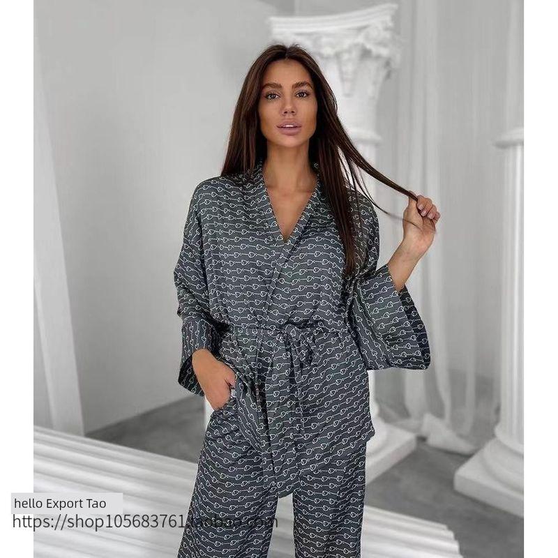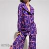 Western Style Print Cardigan Top Trousers Loose Set Women Home Wear Printed Top Set