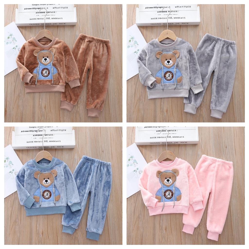 2025 Children's Two Piece Sleepwear Warm Men's and Women's Velvet Set Autumn and Winter Home Furnishings