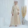 New Arrival Middle East Turkey Pure Color Drawstring Sleeves Silm Dress Solid Color Waist up Dress