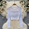 Fashion Pure Desire Mesh Patchwork Niche Style Long Sleeves T-shirt