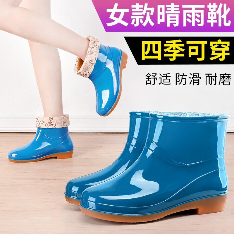 Short tube spring and autumn women's rubber shoes kitchen mother waterproof non-slip cleaning rain shoes rubber shoes cotton cover warm water shoes