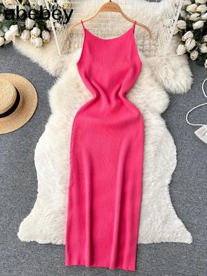 Cut Out Mesh Sling Dress Women's Summer New Arrival Bandage Dress Outer Wear Mid Length Long Length Silm Vest Blouse Skirt