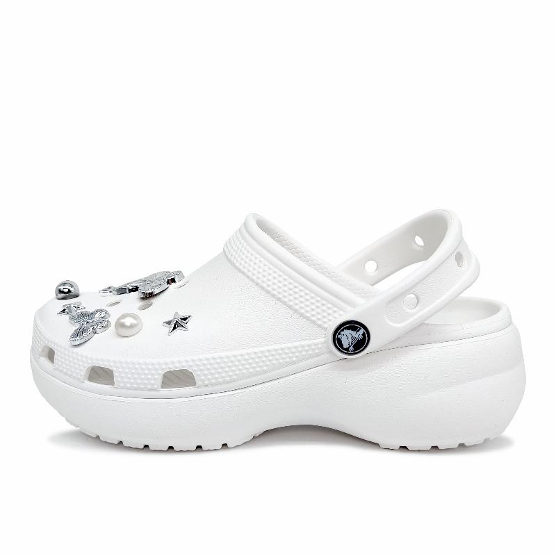 Crocs Classic Platform Clog EVA Aoyama Electroplating Butterfly Simple and Versatile Cloud Fashion Trend Hole Shoes Women White
