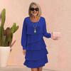 O vestido ostenta um design elegante de bolo em camadas, adicionando um toque de elegância ao seu visual.. Perfeito para várias ocasiões, este vestido de cor sólida exala sofisticação e estilo vanguardista..