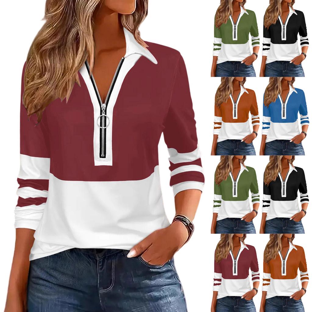 Women's Long Sleeve V Neck Blouse Business Casual Tunic Top Loose Fit Work Shirt