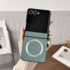 Para Capa Samsung Galaxy Z Flip7 5G Compatível com MagSafe Textura de Tecido Couro PU+PC Capa Traseira para Celular