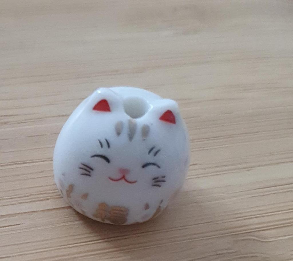 Ceramic Lucky Cat DIY Bracelet Pendant - Vertical Hole Beaded Charm Daruma Cat Accessories