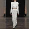 Conjunto Cardigan Jaqueta de Contas Europeu e Americano Novo 2025 e Saia Midi com Fenda