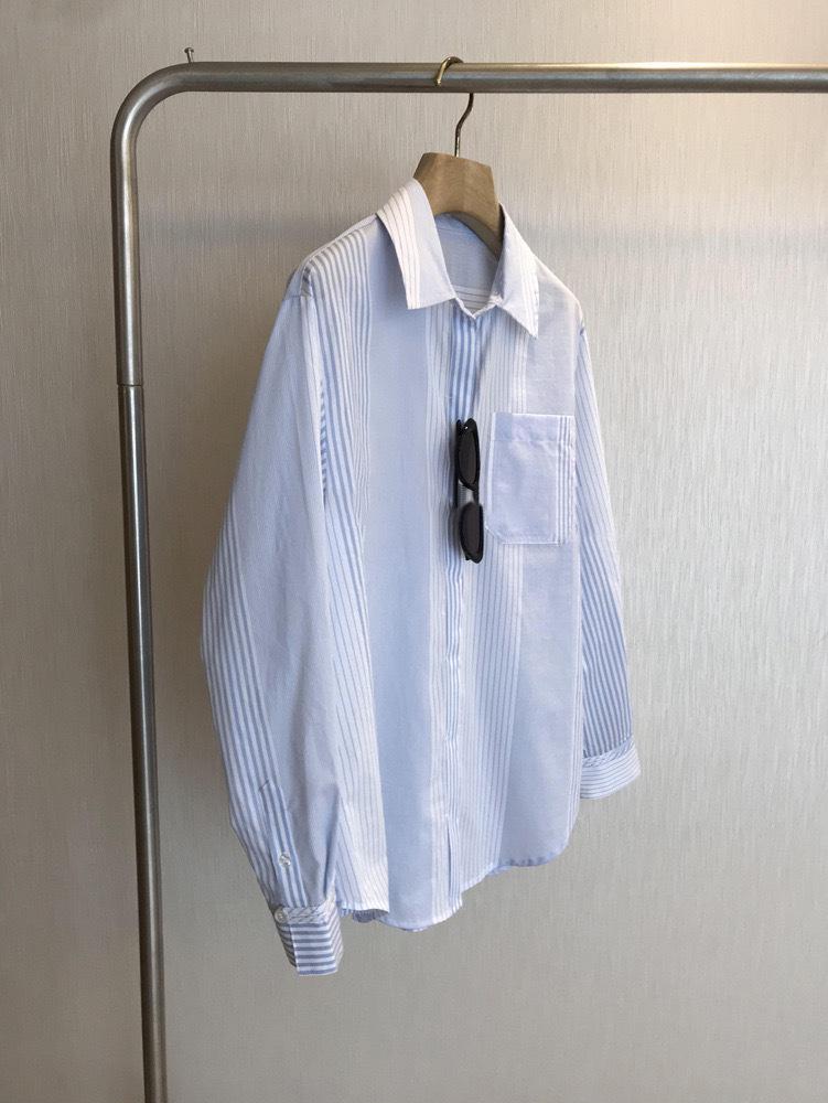 High-End Minimalist Striped Long-Sleeve Turn-Down Collar Shirt for Women