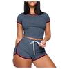 Fashion Women Summer Lady Split 2 Piece Sports Suit Set Casual Cotton Blend Suit