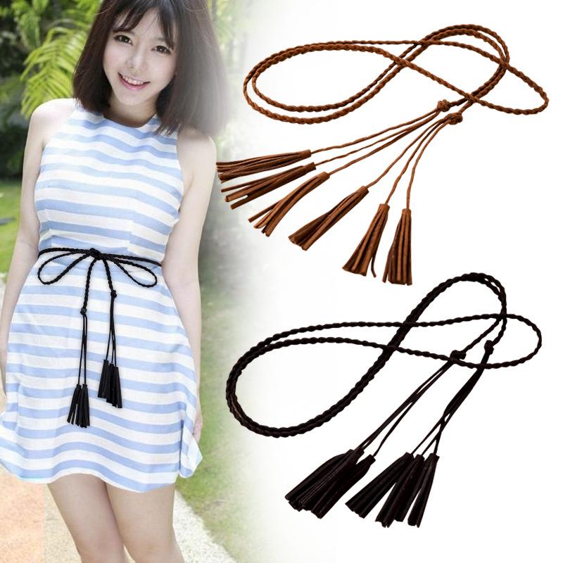 Cinto de Cintura Feminino Tecido com Borlas - Couro Nó Corda Fina Acessório Corset