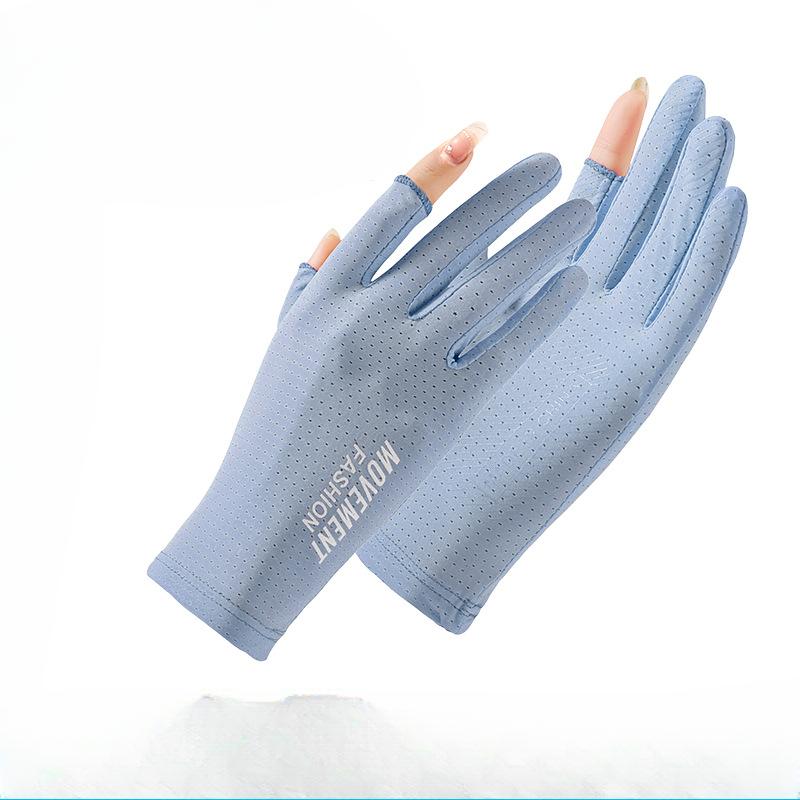 Summer Sun Protection Gloves for Women Thin Breathable Two finger Outdoor Riding Non Slip Driving Takeaway Finger Ice Silk Gloves