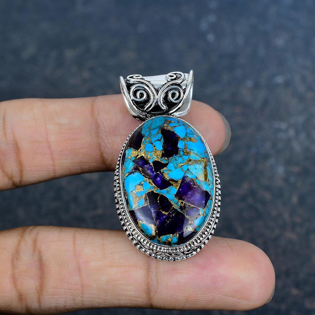 Copper Amethyst Turquoise Handmade Gemstone Pendant, 925 Solid Sterling Silver Pendant Antique Jewelry, For Memorial Day