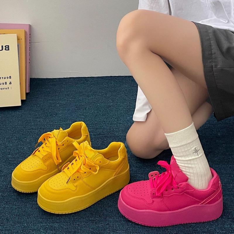 Sapatos de plataforma grossa dopamine, versáteis, sapatos casuais amarelos novos de verão para mulheres