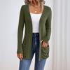 Cardigan de Malha de Comprimento Médio de Cor Sólida de Manga Comprida para Mulher Jaqueta com Bolso Suéter Suéter de Malha