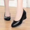 Autumn bank round head non-slip long standing is not tired of feet, new interview black flat bottom wedge heel KFC work shoes