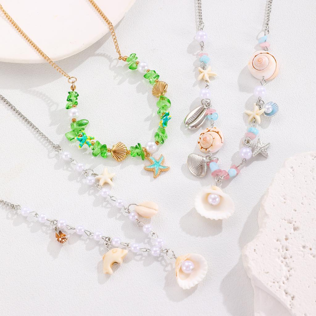 Sweet Summer Choker Necklace for Women Dopamine Seashell Starfish Pendant Asymmetrical Seaside Layered Chain Boho Zircon Gift