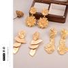 Brincos Cor Dourada Exagerados Estilo Vintage Feitos de Metal Folha Delicada Texturizada Geométrico Irregular Brinco Mulheres Y2k Zircônia