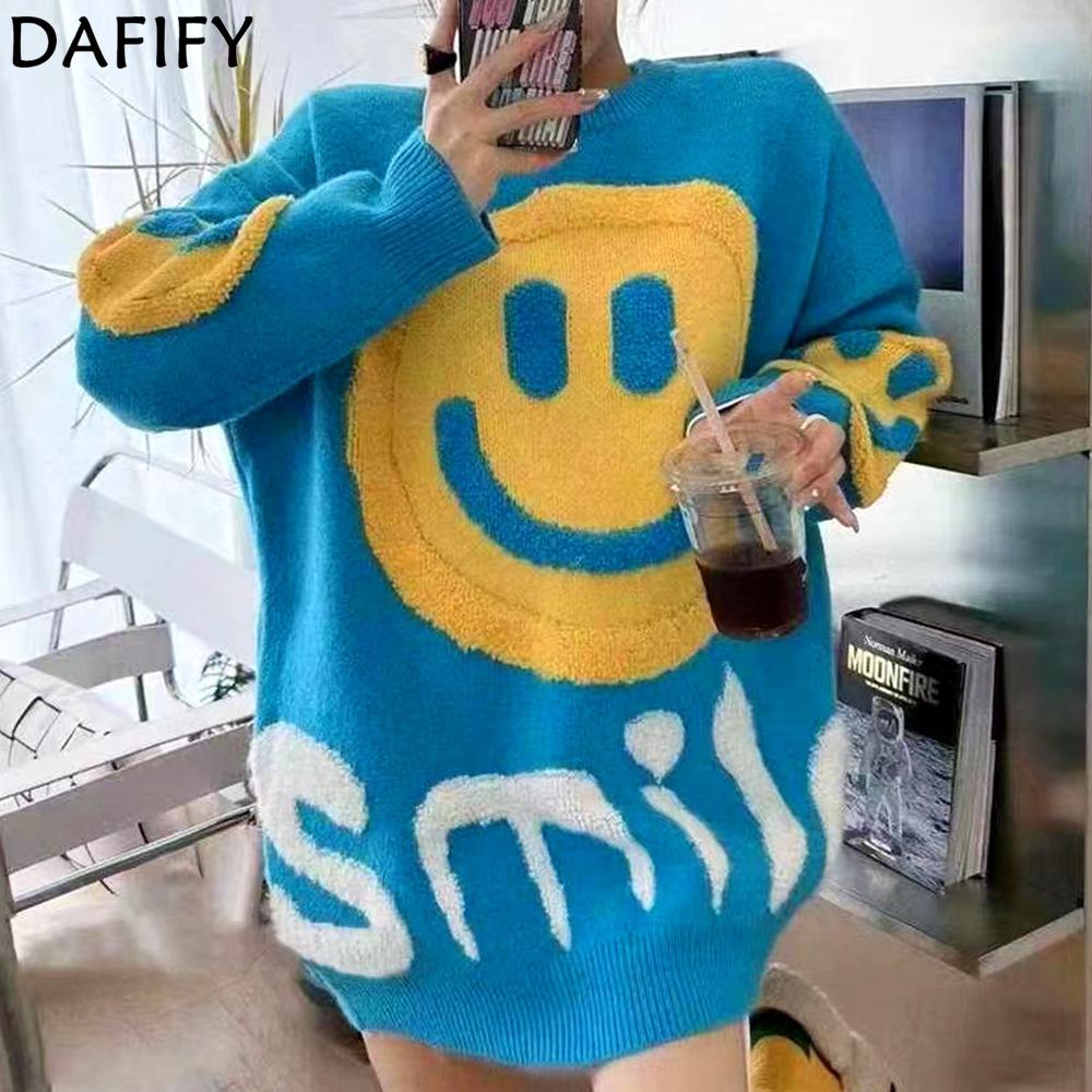DAFIFY Moda feminina casual outono inverno manga comprida gola redonda suéteres