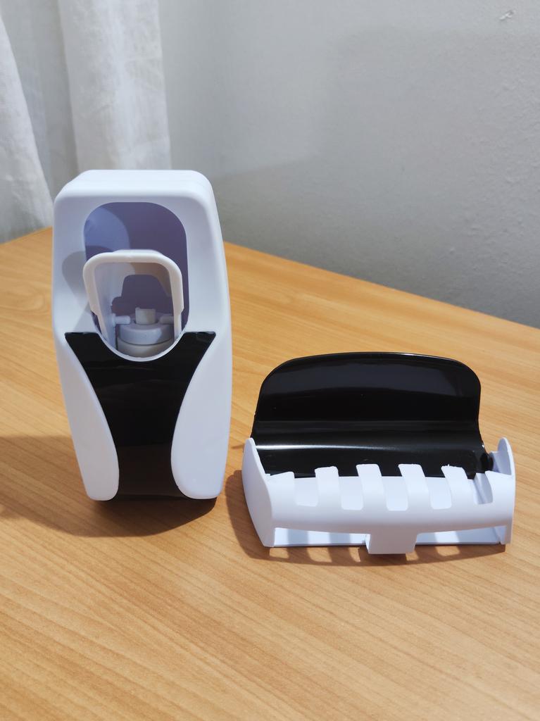 Conjunto de banho funcional e confortável que inclui um dispensador automático de pasta de dentes com porta-escovas de dentes. O pacote inclui um conjunto com um suporte de alta qualidade e durável. O produto é feito de uma placa de silicone de alta qualidade, que garante uma aderência estável em qualquer superfície lisa.. As dimensões do suporte são de aproximadamente 16x10 cm, compacto e conveniente para uso em uma variedade de espaços.. O design não é apenas estético e moderno, mas também muito higiênico – mantém a limpeza e a ordem no espaço do banheiro ou da cozinha.. Adequado para uso familiar, em hotéis, lavabos e mais, e aprimora a experiência de armazenamento e acessibilidade. Um produto inteligente que proporciona conforto e manutenção da higiene de forma simples e eficaz.