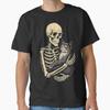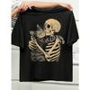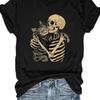 Camiseta Gráfica Gato Abraçando Esqueleto Camiseta de Gola Careca Casual Estampada Perfeita para Amantes de Gatos Roupa Feminina