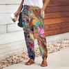 Women Bird Printing Pants Lace Up Elastic Waist Loose Trousers Casual Long Pants Trousers with Pockets