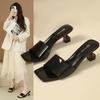 Large size crystal thin heel square head with slippers for women wearing new high heel transparent cool slippers for women