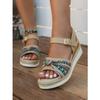 Slope heel platform sandals women's summer new large size bow one-word buckle casual women's sandals
