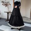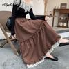 Estilo Francês Outono Inverno Mulheres Princesa Saia Midi Cintura Alta Preto Bege Marrom Renda Babados Saia Doce Elegante Feminina Saias