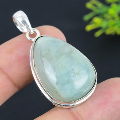 Pingente de prata esterlina 925 feito à mão com pedra preciosa natural de água-marinha 1,85" U0L74