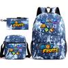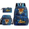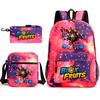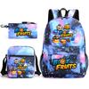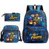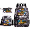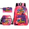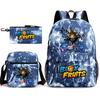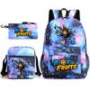 Mochila Escolar para Adolescentes Jogo Blox Fruits Fruta do Demônio Escola Primária Estrela Pintura Térmica Conjunto de 3 peças