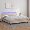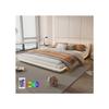 Cama Estofada 160x200cm com Iluminação LED, Camas de Chão Camas de Casal com Cabeceira e Estrado, Sem Colchão