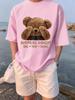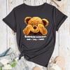 BEAR Pattern Cotton T-Shirt Short Sleeve Round Neck Women 2d Print Tops