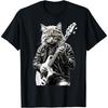 Gato Rockeiro Tocando Guitarra Camiseta Engraçada de Gato Guitarrista Masculina Hiphop Oversized Camiseta Casual de Algodão Diária Quatro Estações Streetwear Camisetas