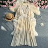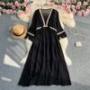 Vestidos longos vintage femininos verão decote em v meia manga borla retalhos linha a cintura alta vestido de renda