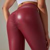 Liberação: Leggings de Yoga de Cintura Alta com Drapeados para Levantar o Bumbum - Ajuste Fino em Couro PU