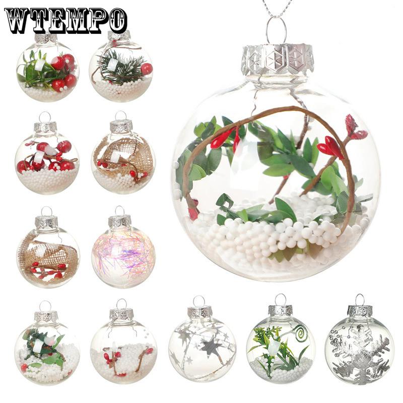 WTEMPO Bolas Decorativas Transparentes de Natal Ornamento de Esfera de Plástico Preenchível para Árvore de Natal Bolas Redondas Penduráveis Festa Interna Externa Mini Caixas de Presente