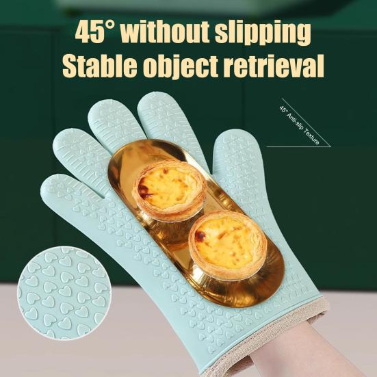 1Pc Silicone Oven Mitt Heat Resistant Baking Gloves Non-Slip Kitchen Mitts with Cotton Lining