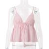 Summer New Arrival Wooden Ear Wrinkle Idle Style Sling Women's Pink Tops Low Cut Open Back Shoelace Sexy Vest