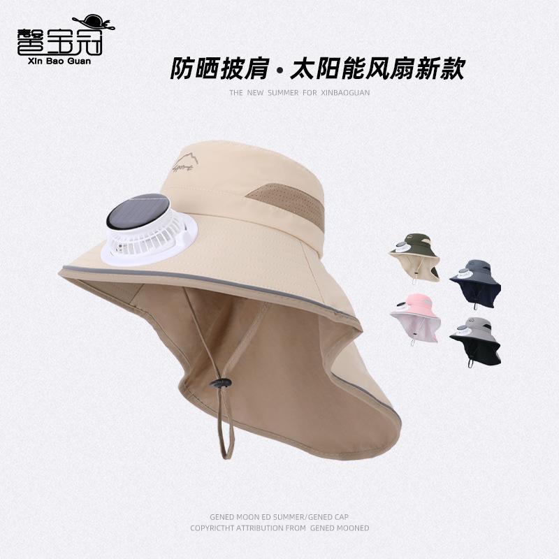 Chapéu infantil aba grande xale chapéu balde verão meninos e meninas chapéu de proteção solar para exterior chapéu de sol com ventilador solar
