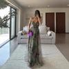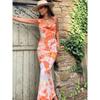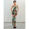 Outfitgirl French Sexy Vacation Style Tie-Dye Print High Waist Sling Dress Split Irregular Skirt