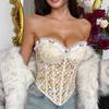 French Style Fancy Special-Interest Design Embroider Fishbone Pure Desire Bandage Backless Tube Top Vest Sexy See-through