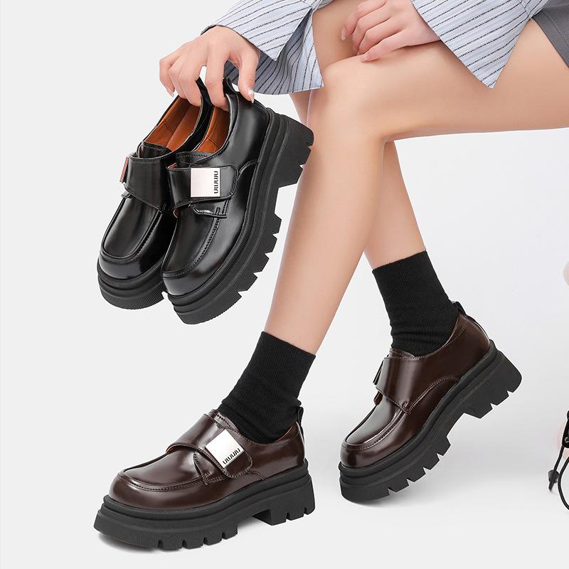 Small leather shoes women's 2025 spring and autumn new versatile single shoes British style platform shoes lace-up shallow mouth big head shoes wome